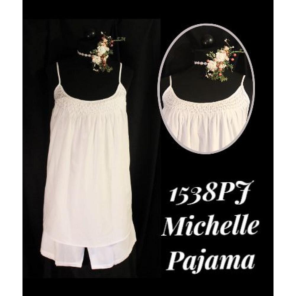 This pajama set has a smocked neckline with adjustable straps and elastic on the back, which allow for a full fit. This set comes with pajama shorts with and elastic waistline. These shorts are a full culotte style sleeping shorts. See Short length in chart.
